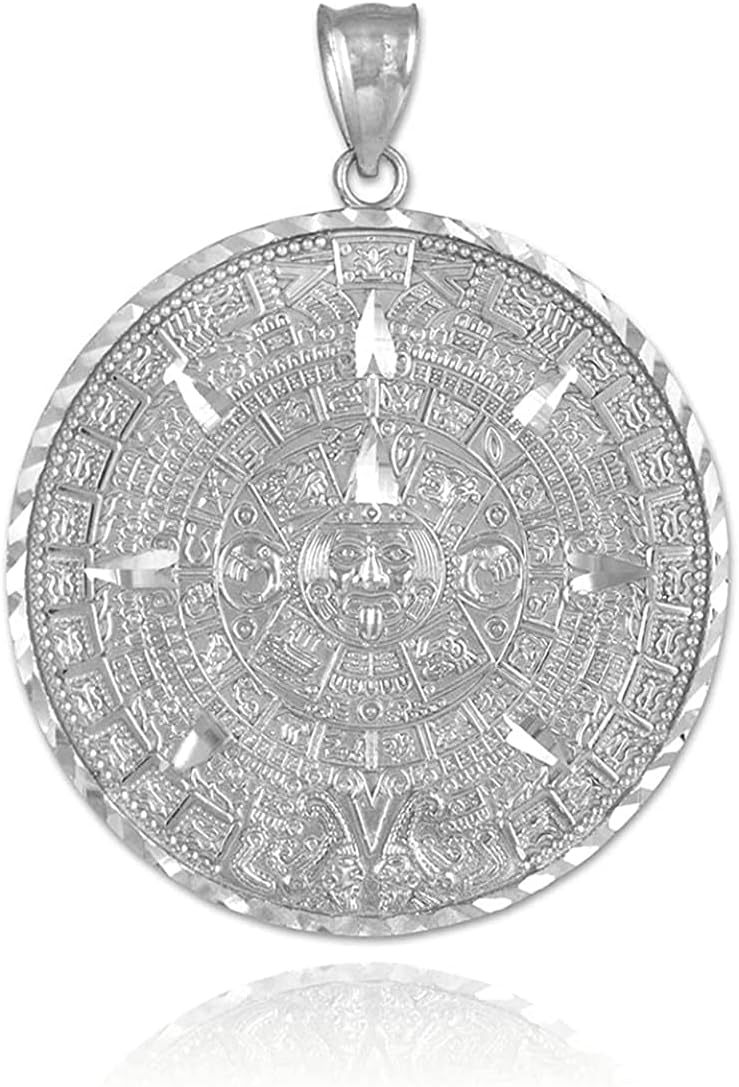 .925 Sterling Silver Round Aztec Mayan Calendar Charm Pendant – Choice of Pendant Size