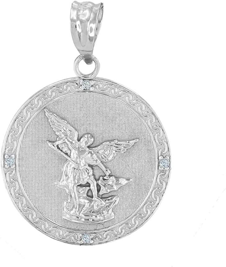 .925 Sterling Silver Saint Michael The Archangel White Cubic Zirconia Accented 1” Medal Pendant Necklace with Rolo Chain and Pendant only