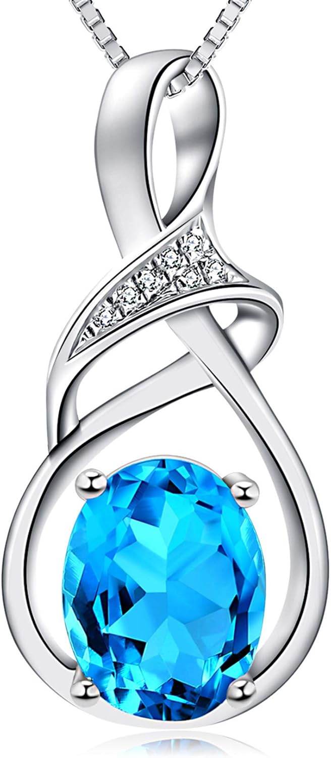 HXZZ Fine Jewelry Birthstone Gifts for Women Natural Gemstone Topaz Amethyst Opal Garnet Peridot Citrine Sterling Silver Pendant Necklace Birthday Gift for Wife Mom